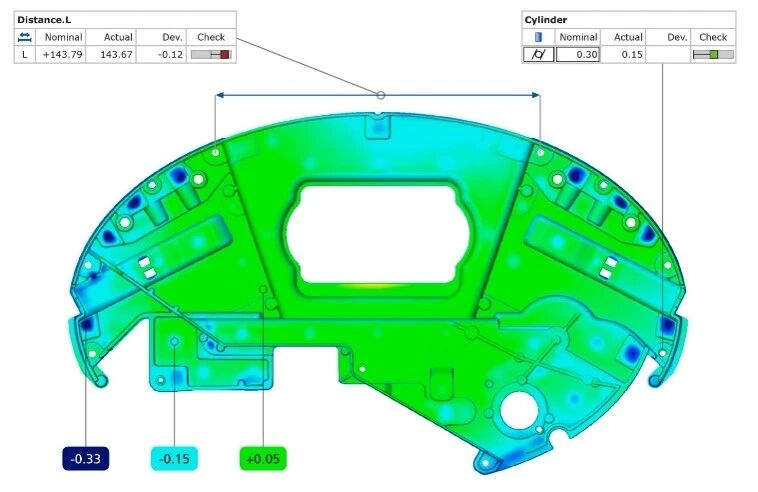 ZEISS INSPECT 软件能够提供三维可视化检测功能, 帮助用户直观地了解注塑件的形状、尺寸和表面质量等关键信息。