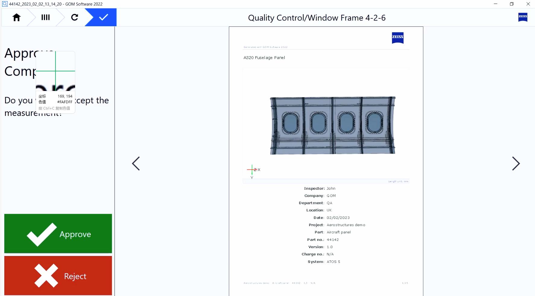 扫描数据实时同步至蔡司INSPECT专业软件,快速生成数字孪生模型与可视化偏差报告,支持虚拟装配验证与后续维护溯源,为生产优化提供精准数据支撑。无论是新件制造的全尺寸检测,还是老旧侧板的逆向修复,该方案均能灵活适配,有效降低试错成本,助力航空企业提升生产通量与投资回报率。