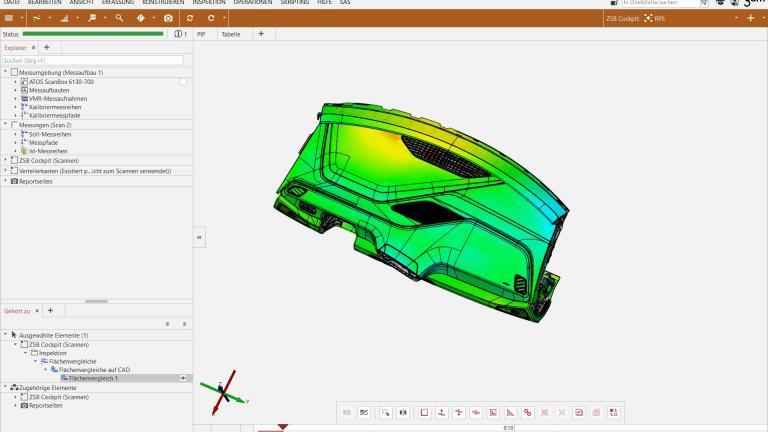乌韦・舒尔茨(Uwe Schulz)在采集完装配成型的驾驶舱数据后,会将其表面数据与 CAD 标准模型进行精准比对。扫描完成的部件可通过彩色图像实现可视化评估,操作人员仅凭肉眼就能快速识别出尺寸偏差与材料缺陷。一旦发现杂物箱等部件出现变形,或是乘客安全气囊装饰缝线的安装间隙与 CAD 模型不符,SAS 会立即启动纠正措施,直至部件完全达标。