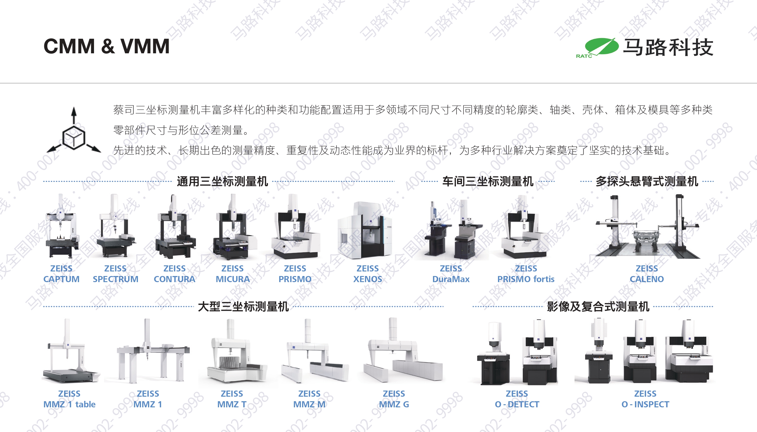 马路科技是蔡司官方授权销售商,三坐标测量机(CMM)以“多型号适配+全场景覆盖”为核心优势,满足不同尺寸、精度需求的测量任务: