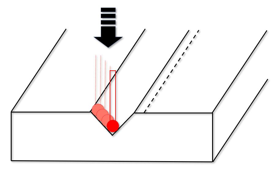 首先,探针沿着V型槽也就是向螺纹底部“慢慢移动”。