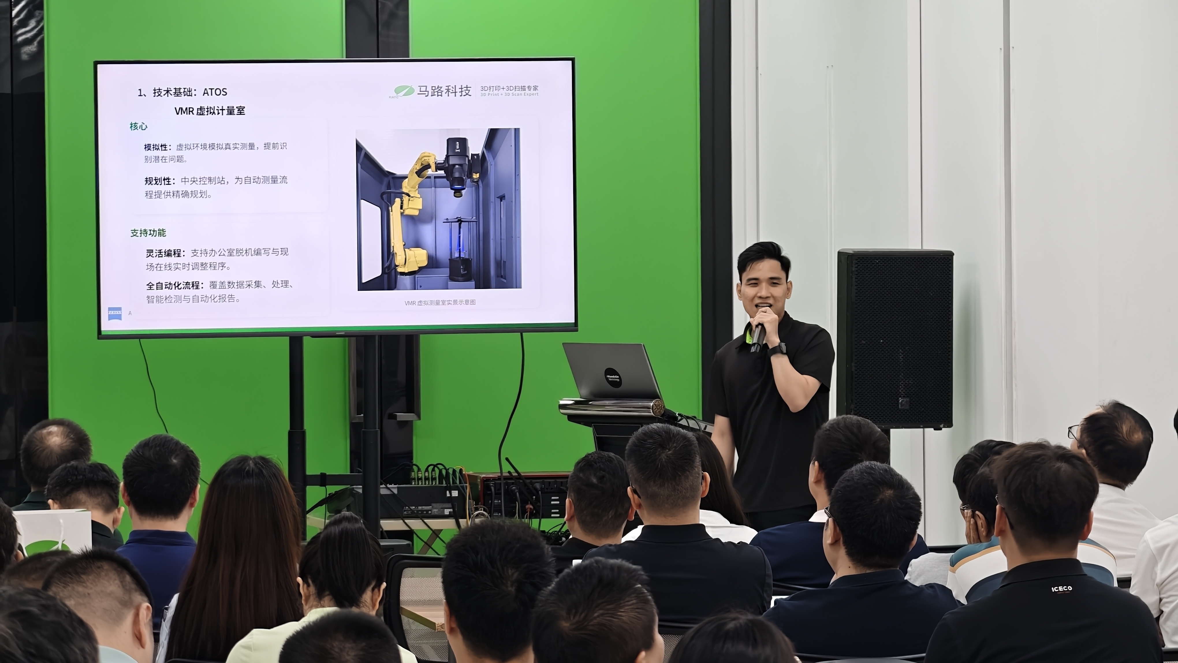活动开幕,分别由马路科技华东客户经理Allen和华南产品销售经理Roy,分享马路科技3D数字化智造全闭环解决方案,完整展现马路科技3D数字化全链条服务能力与全球化布局。