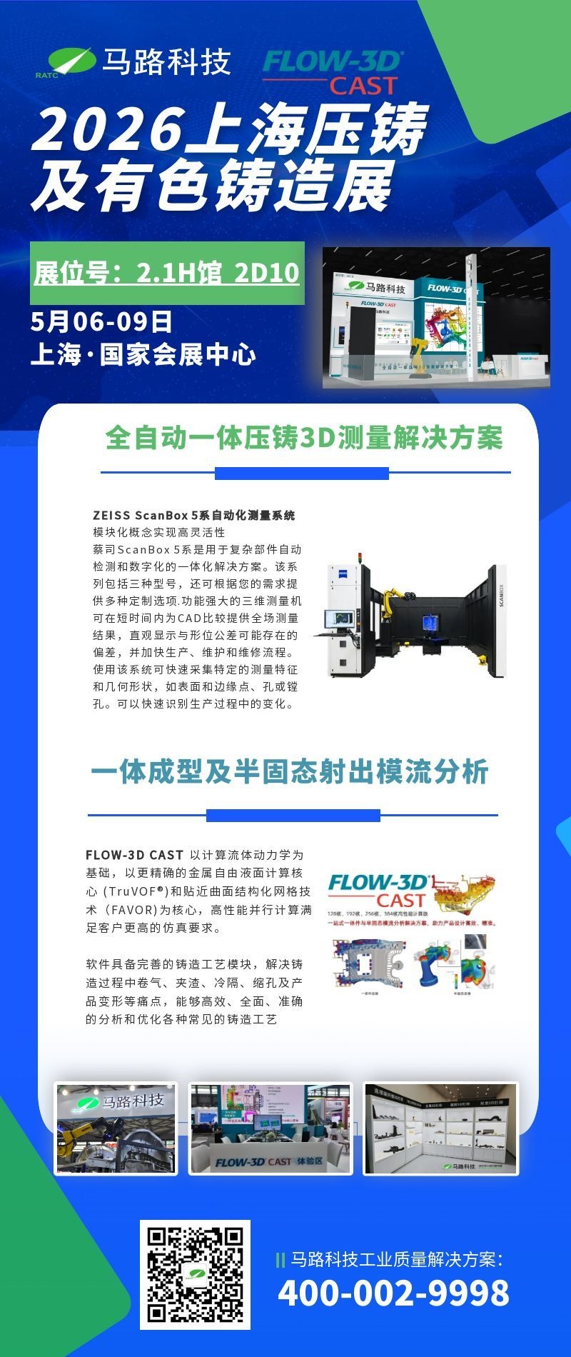 马路科技重磅集结高精度3D测量设备、FLOW3D CAST模流分析软件与工业级增材制造全链技术,以“双展联动”形式,同期亮相两大行业盛会。
