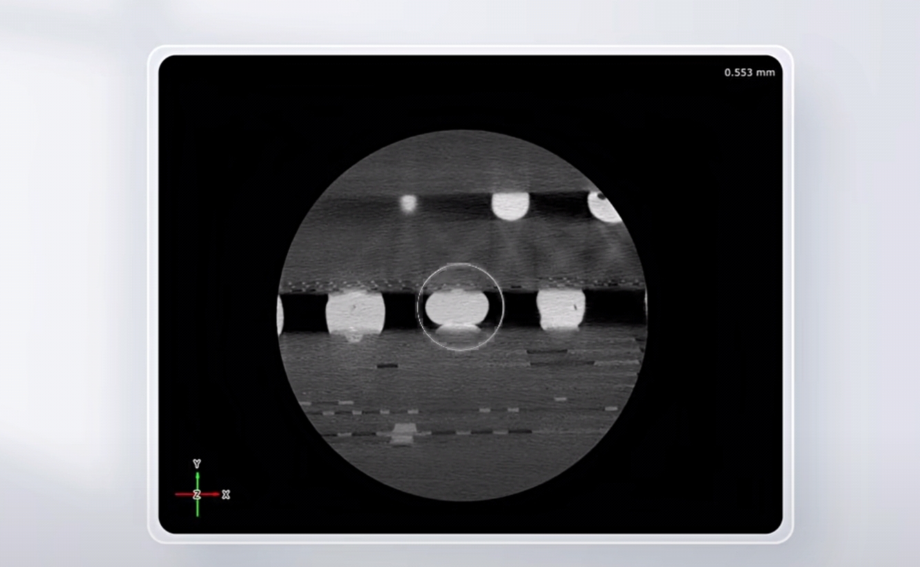 以那副“躺平”的耳机为例,通过蔡司工业CT扫描,工程师能在虚拟三维空间中任意切片、旋转、放大内部结构。检测报告会精准标出:左声道扬声器附近的焊点存在0.02毫米的裂纹,正是此次断裂导致信号中断。这种“数字解剖”不仅定位故障,还能还原跌落冲击力如何在内部结构中传导,从而为产品结构优化提供数据支撑。