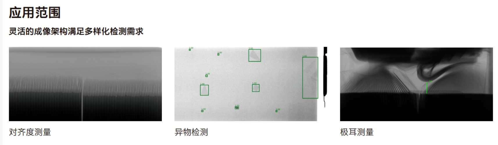 针对圆柱电池的生产特性,该设备精准覆盖极片对齐度、负极汇流盘到正极片的间隙及内部异物等关键检测项,实现毫米级精确测量与缺陷识别。同样集成自动化AI算法,从数据采集到结果判定全程智能闭环,保障检测的一致性与可靠性。
