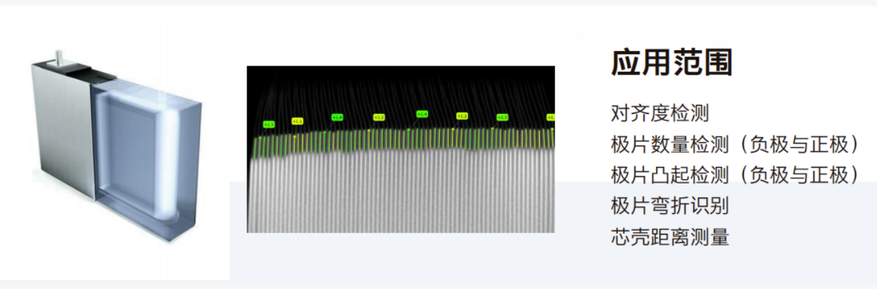 搭配360°完整CT扫描技术,能够精准呈现电芯内部三维结构,可完成对齐度检测、正负极极片数量统计、正负极极片凸起识别、极片弯折判定及芯壳距离测量等多项核心任务,在高效流转的生产场景中,实现无死角的精准质控。